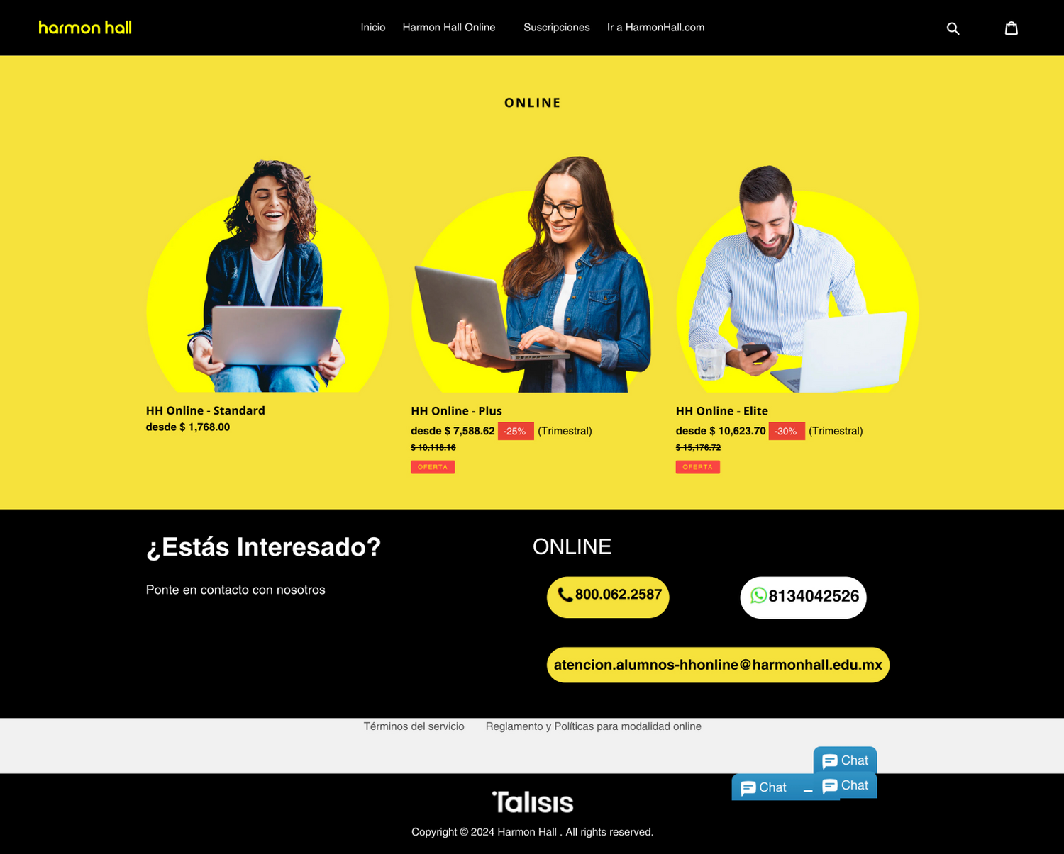 En 2020 con la llegada de COVID, Harmon Hall nos buscó para montar un sitio en donde pudieran vender educación en línea.