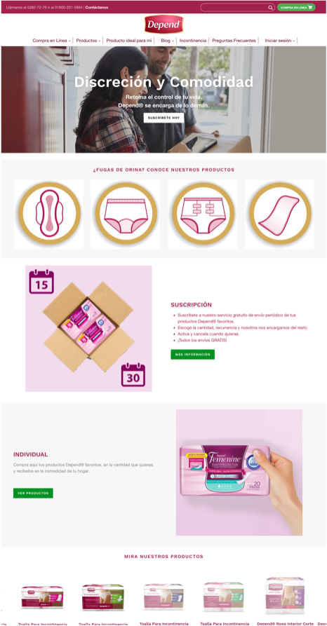 Tienda Depend es un proyecto en conjunto con Kimberly Clark México. Se ofrecen pañales de adulto y productos para la incontinencia. La operación comenzó en 2019.